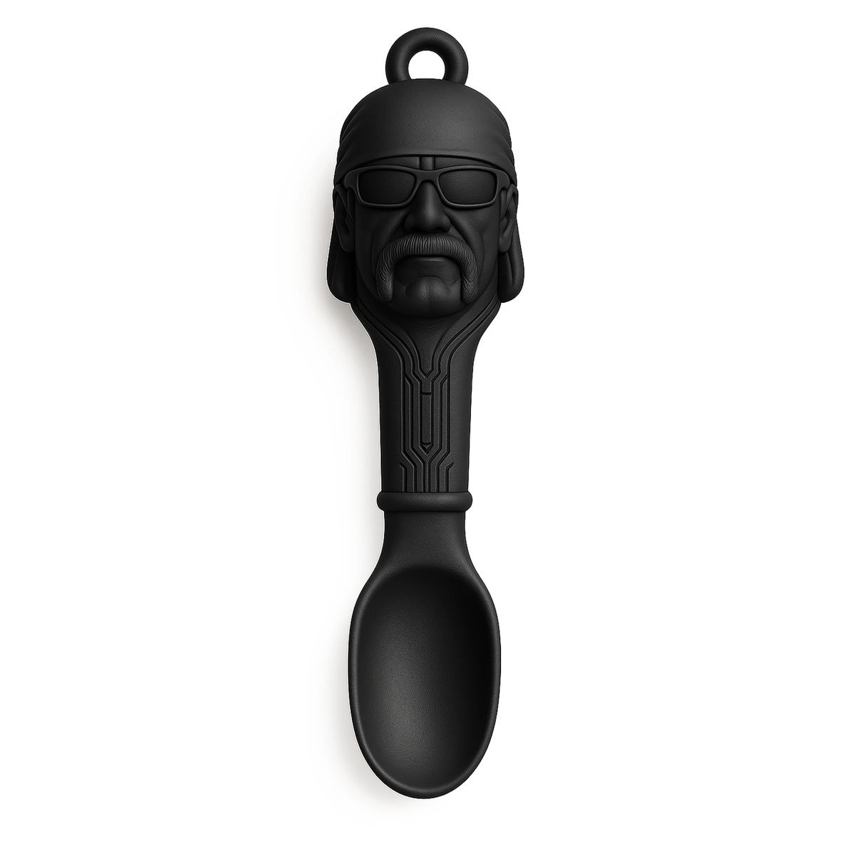 The handle showcases precision-etched, circuit-inspired patterns that seamlessly transition into a smooth, oval bowl, perfect for scooping powders, herbs, or spices with ease. A discreet integrated loop at the top allows for attachment to a necklace, keychain, or lanyard, so it’s always close at hand.