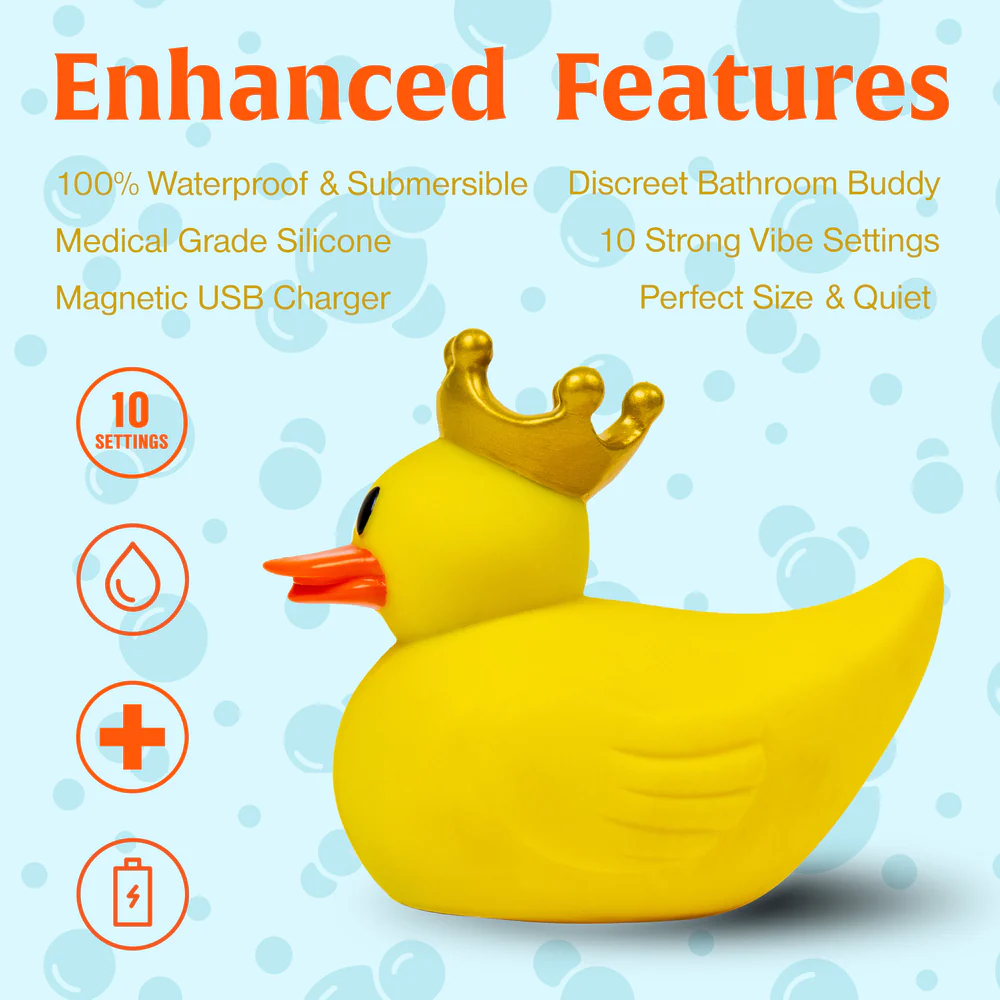 The perfect combination of cute design and pleasure. This playful and discreet sex toy is designed for use in the bath or shower, making it a great addition to individual or couples play. The Lucky Ducky comes with an insertable bullet vibrator that offers 10 different vibration modes, and its compact size and waterproof design make it a fun choice to pack for on-the-go pleasure. This vibrator is made from body-safe materials, it’s easy to clean, ensuring you can enjoy it for years to come. Bring some fun and excitement to your next bath or shower with Lucky Ducky!