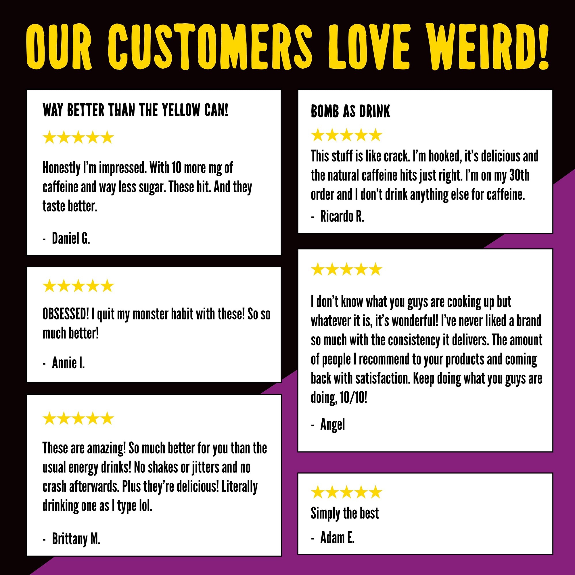 - It’s been said that every time you drink a can of WEIRD YERBA, a baby on the planet speaks its first word, which is usually “Bruh.”
