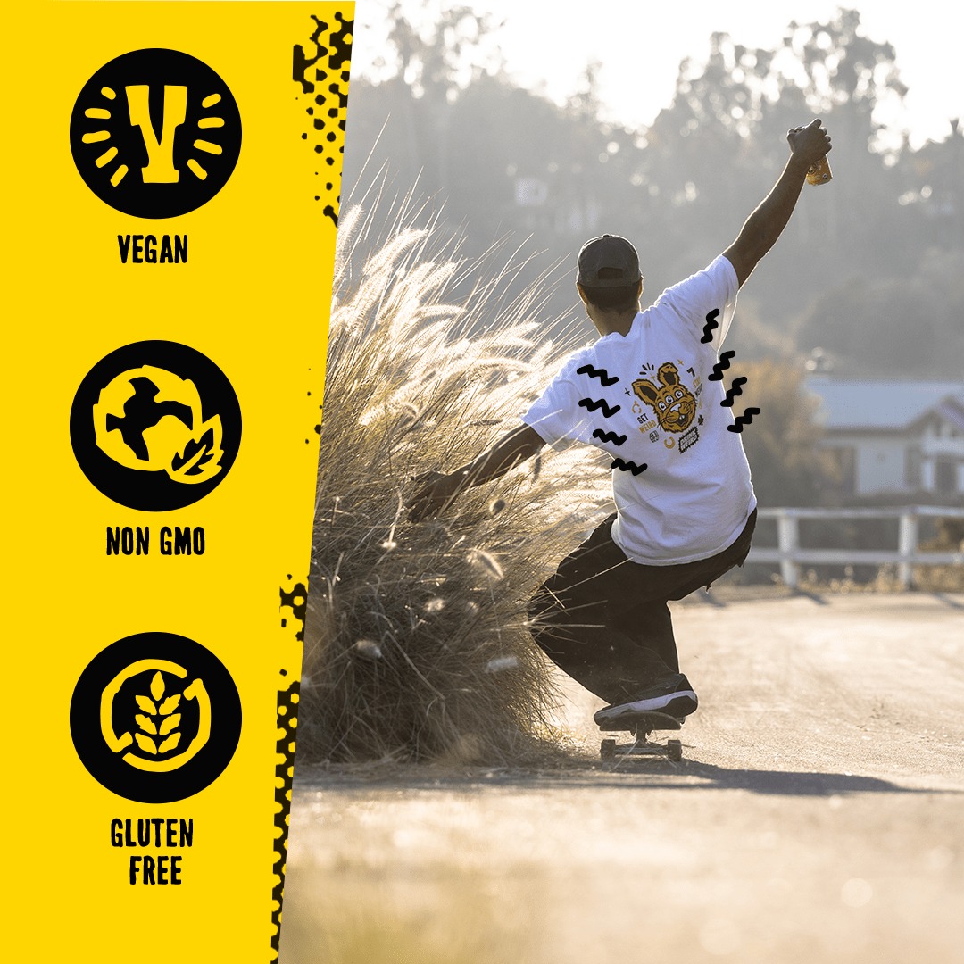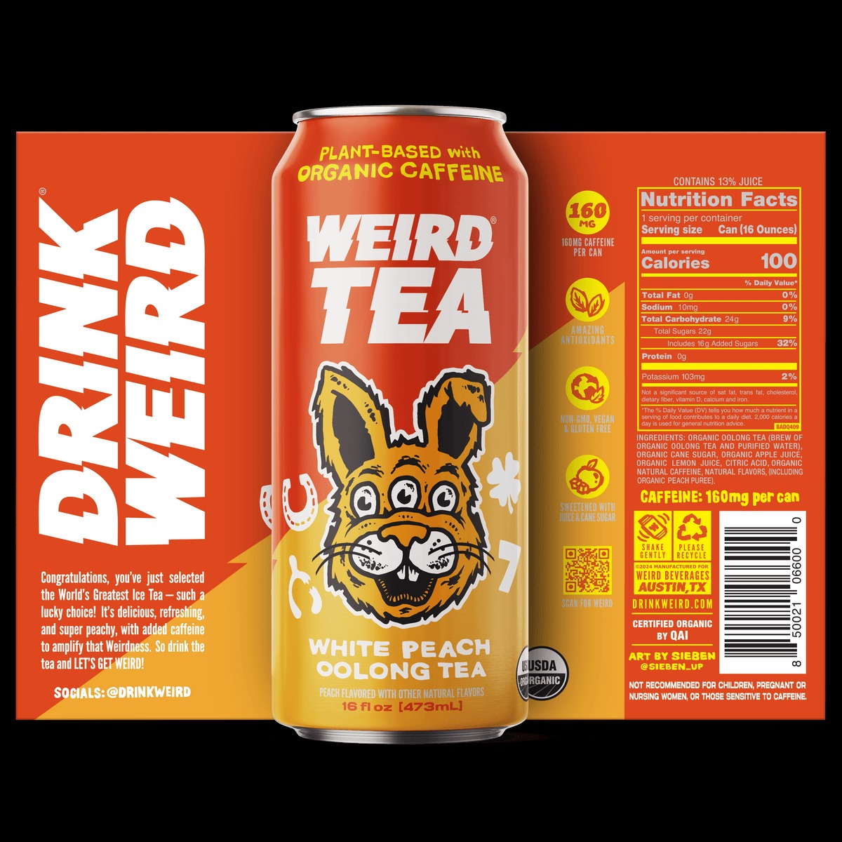 Congratulations! You’ve found the world’s greatest ice tea. Our White Peach Oolong Tea is organic and plant-based with 160MGs of natural caffeine per can. It’s not only delicious and refreshing, but it packs a peachy punch that will please your palate. Plus, there’s a rabbit on the can, which is symbol of good luck. You could use some luck—we’ve seen how you drive. Be careful out there!