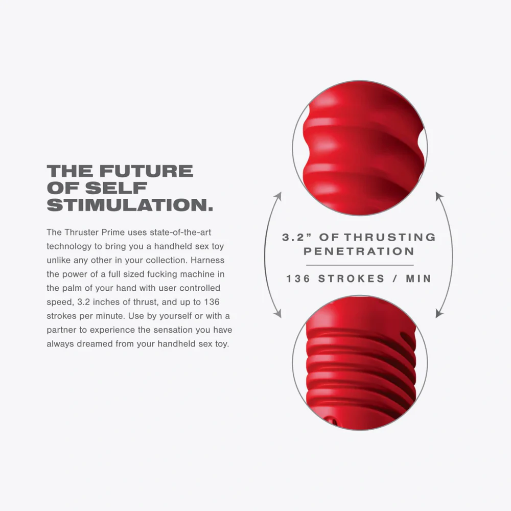 Velvet thruster prime users benefit from the suction cup for hands-free play or the long-reach handle attachment, as both make for easy use and less fatigue.